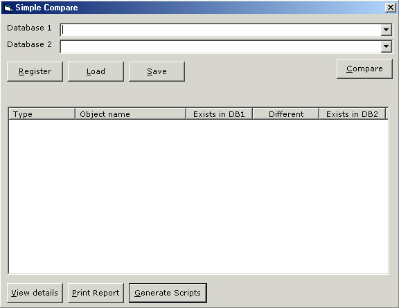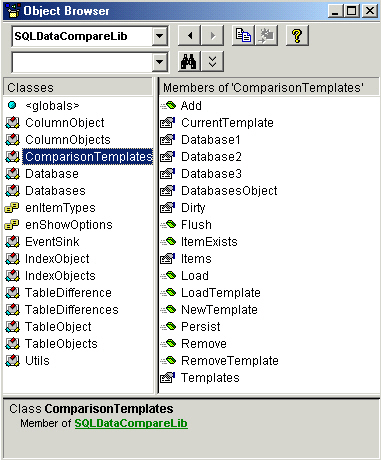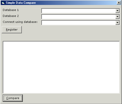 The toolkit contains a 49 page Word document that goes into good detail explaining how to use the COM object. If you've used VB with COM before I think you'll find the object model pretty straight forward. The toolkit also includes four sample applications, two standard VB apps that are simplified versions of SQL Compare and Data Compare, and two command line versions of those same apps. Complete source code for all four included! Here is what the two graphical versions look like: