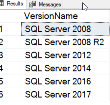 SELECT * FROM dbo.SQLServerVersions