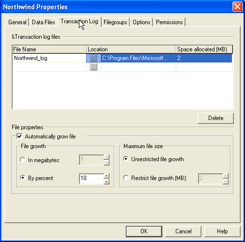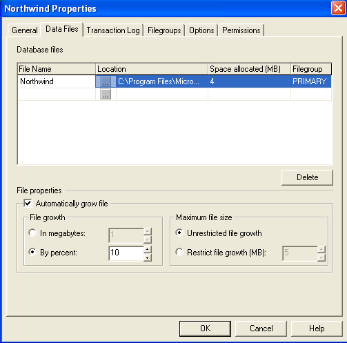 At least in SQL 2000 the default is for both data and log files to grow by 10