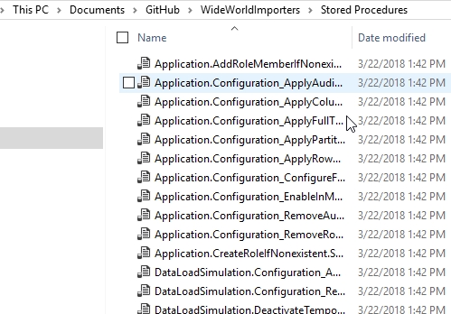 Once I've completed this, I'll rescript my procedures using the procedure above. This will script all of them, and they'll overwrite the files. I'll see all the files with a new datestamp. Trust me, if you try this, the Date Modified will change for all files.