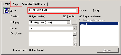 Enter the Name of the new SQL Agent Job, then press the Steps button