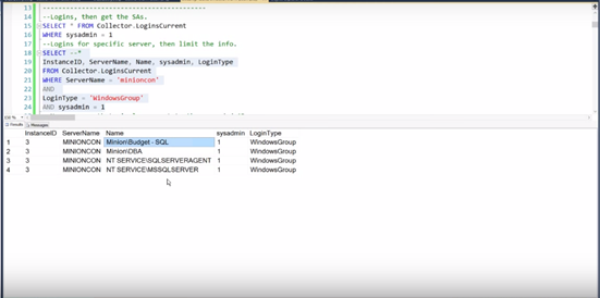If you’d like a list of the sysadmin accounts across all servers, just remove “AND ServerName = ‘MINIONCON’”.