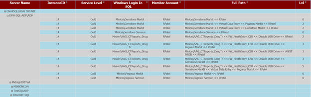 This report is immensely useful, and makes sysadmin rights visible across a single server, a group of instances, or all instances in your environment. And of course, Minion Enterprise provides other reports, procedures, views, and the underlying tables themselves to simplify many other kinds of discovery.