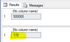 SELECT DATEDIFF(MILLISECOND, @d, SYSUTCDATETIME())Listing 7: Measuring executoin duration. Case #1