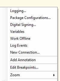 Right-click on a blank area in the control flow work area, then click on Package configurations.