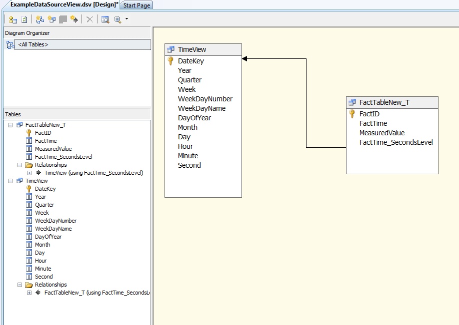 Once you've done this, you can define your date dimension hierarchies (i.e. Year, Quarter, Monty, Day, Hour, Minute, Second) in the designer as usual and start processing your cube. To support incremental loading of the time partition you simply need to pass in the range of time-stamps to the Proactive Caching polling queries, and Analysis Services will take care of the rest for you. It's best to pre-load a few samples worth of time values, or if space-permits pre-allocate several months or years worth of values. This will prevent the need to periodically re-process the time partition at the same time as the fact partition.
