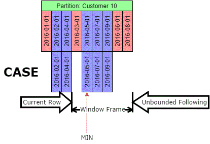 MIN(CASE WHEN TransType = 'D' THEN TransDate END) OVER(PARTITION BY CustID ORDER BY tot, TransType ROWS BETWEEN CURRENT ROW AND UNBOUNDED FOLLOWING) AS DebitDate,