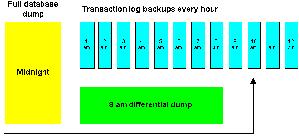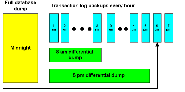 includes the contents of the previous differential) and the 6 pm transaction log