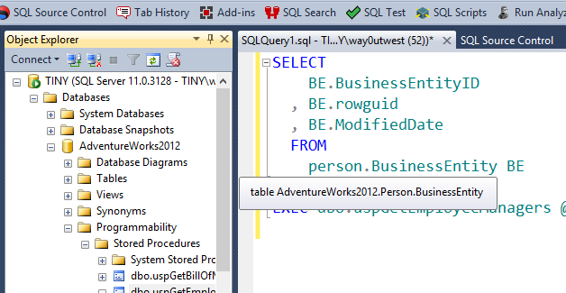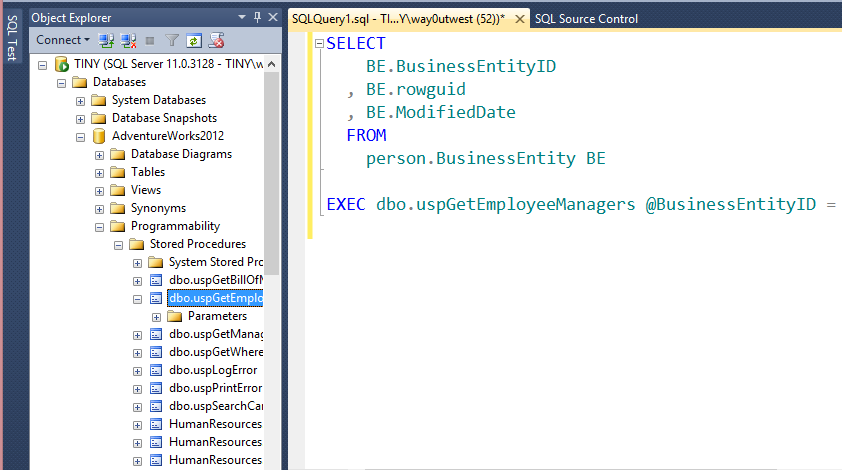 If I then press CTRL+F12, my Object Explorer will immediately jump to the proper location for this stored procedure.