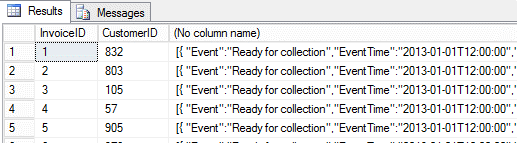 FROM [WideWorldImporters].[Sales].[Invoices]We can see on the results grid that the first event is always “Ready for collection”: