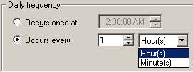 The stored procedures have a parameter @freq_subday_type, it has three values according to BOL:
