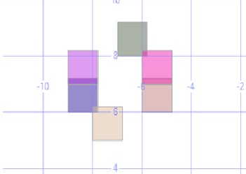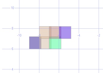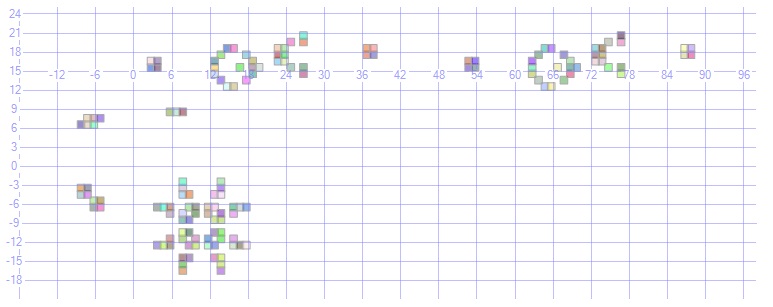With the 'CPU benchmark' parameter, the coordinates are converted to geometric polygons, cell sizes are increased by 20% and the geometric 'Intersect' method is used to count adjacent Merkles. This cell expansion is illustrated by the 'Toad' pattern (see wiki) shown below in its base state/starting pattern.