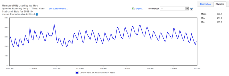 Figure 2: Amount of memory used by one-time use ad hoc queries over a four-hour period.