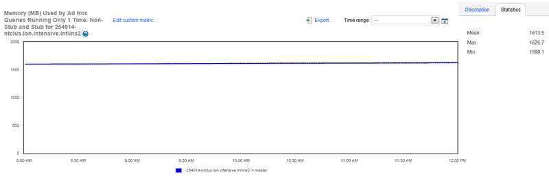 We have also seen this metric before. It measures the total amount of memory in the plan cache currently occupied by one-time use ad hoc queries. Again, I created a custom metric in SQL Monitor so that the query runs every 60 seconds and stores the data for graphing.