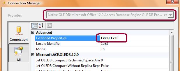 5. Select All option and at the Extended Properties enter Excel 12.0. After this you will see a screen like following image.