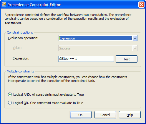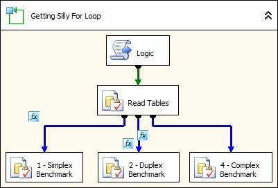 | Tip: In the Precedence Constraint Editor above we specified Evaluation operation = "Expression". This has the side effect of allowing the benchmark tasks to run even if the Read Tables task fails! An alternative is to set Evaluation operation = "Expression and Constraint" - this will stop the precedence from triggering unless Read Tables actually succeeds. Tip: You can only set a precedence constraint if you have a preceding task! For instance, if you needed to run Read Tables after each benchmark, you would still need a preceding task to set the constraints against - simply use a no-op as a preceding task, such as a Sequence Container with nothing in it. |