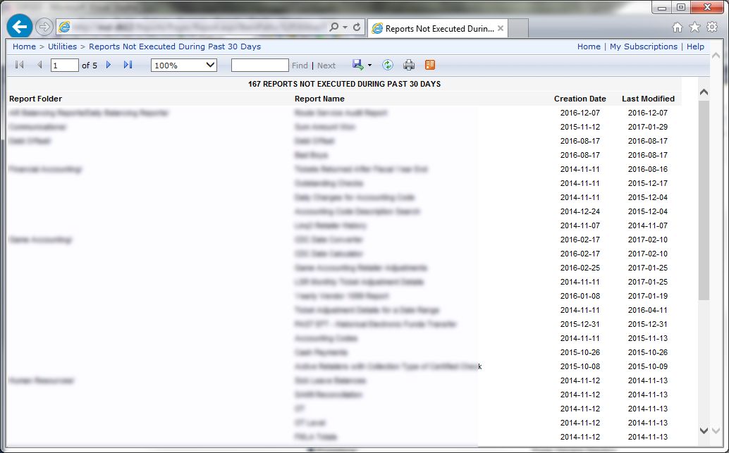 Reports Not Executed During Past 30 Days