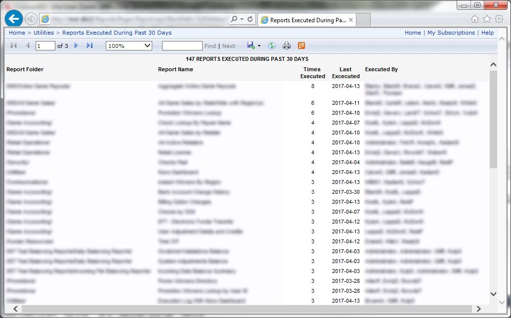 Reports Executed During Past 30 Days