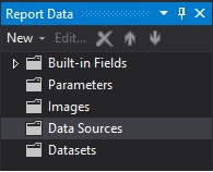 Your report will open in design mode and then you should find a "Report Data" window pane on the left side of your work area. If you don't, go through the View menu in Visual Studio to add it.