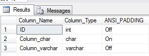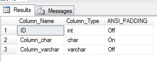 SET ANSI_PADDING OFF;