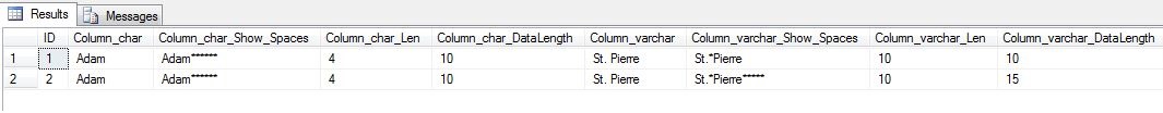 ,REPLACE ([Column_char], ' ', '*') AS [Column_char_Show_Spaces]