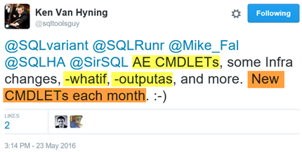 - To read more about the new SQL Agent cmdlets read this post from Chrissy LeMaire.