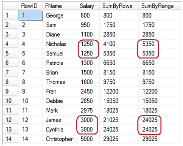 SumByRange = SUM(Salary) OVER (ORDER BY Salary