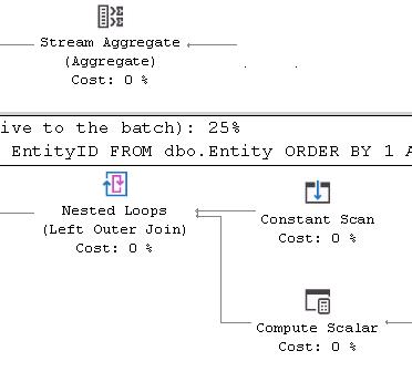 This is the result (and the answer) I expected from all 4 queries, but really do wonder why there all the other operators in the query plan -- I thought the optimizer was "smart" enough to recognize simple queries and not need the extra operators. 🙁