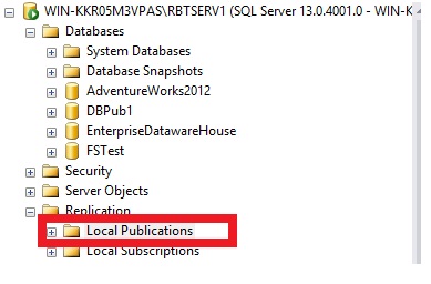 To setup a publication on RBTSERV1, Follow the below steps. First, right Click on folder “Local Publication” and select “New Publication...”