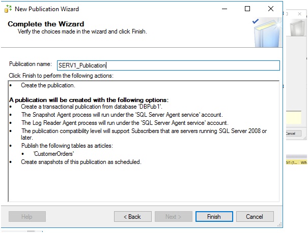 Next repeat the same steps for RBTSERV2 and give your publication a name SERV2_Publication.