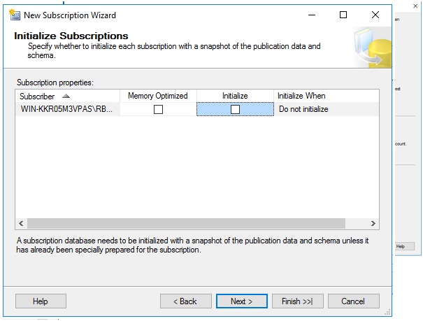 It is important not to initialize the subscription as we will be manually synchronizing the old data.