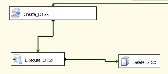 Here is a picture of how the dynamically generated SSIS package might look. The package as many independent Execute SQL Tasks as the rows in the result set from the variable SOURCE_SELECT.