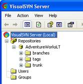 The screen shot of the Adventure Works database on my computer is shown below. I have also installed a VisualSVN server on my machine for demonstration. Usually you will need to setup Visual SVN server on a separate server where you would like to store your source code.