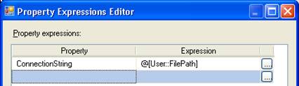 The screen shot below shows the destination connection manager used. The connection string property is mapped to (User::FilePath) using SSIS expressions