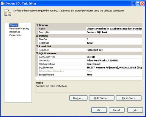 Execute SQL Task 1 “Objects Modified in database since last scheduled check in”