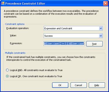 The condition in the above screen shot is @[User::case1] != 0 || @[User::case2] !=0