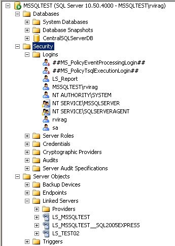 EXEC master.dbo.sp_addlinkedserver @server = 'LS_MSSQLTEST__SQL2005EXPRESS', @srvproduct=N'SQLSERVER', @provider=N'SQLOLEDB', @datasrc=@lserver
