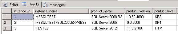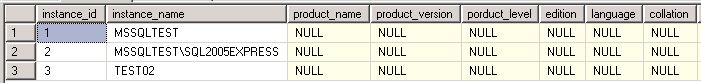 I needed a table to store and maintain all of the SQL Server instances' information like instance name, version, edition, collation and so on. This was very useful because I had options to filter the servers on which anyone wanted to run the query. The instance table looked like this one: