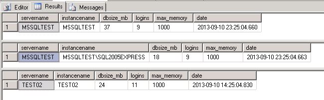 GOThis was exactly what we needed. A movable solution, remember? So far I have chosen an SQL Server instance to be the CentralSQLServer, MSSQLTEST in our case. I then created a CentralSQLServerDB with a table (tbl_instances) containing data from my SQL Server instances. I have also created a login named LS_Report on all instances (this is the boring or so-called 'droid work' part of this solution) and last but not least I have created automatically all of the linked servers in one step.