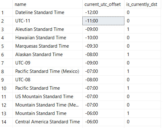No problem, in addition to AT TIME ZONE, SQL Server 2016 added this nifty table that will give you the names of all of the time zones it supports: