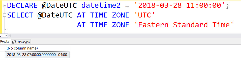 While these types of datetime conversions have historically been a pain, SQL Server 2016 introduced the AT TIME ZONE feature makes these types of conversions a breeze.