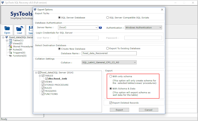 Step 4: Finally, click on “Export” to successfully export the MDF file with only Schema and with Schema or Data.