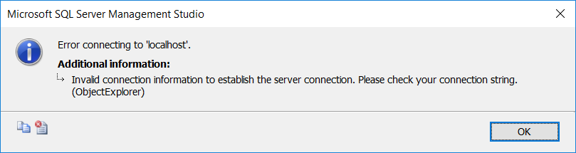 “Invalid connection information to establish the server connection”