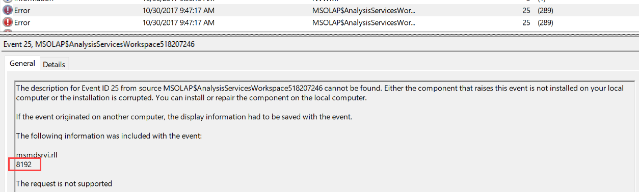 Googling for this kind of messages led to one forum thread where someone had locale issues. Note the 8192 number, which isn’t even featured in the list of locale identifiers. Anyway, I fired up SQL Server Profiler and ran a trace while I was trying to log into the SSAS server. An error popped up: