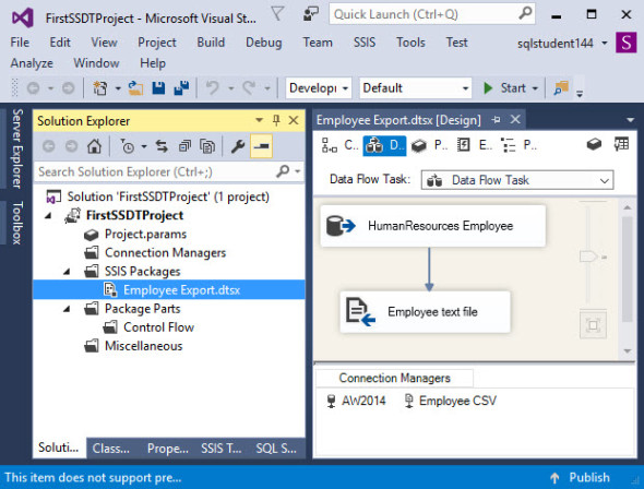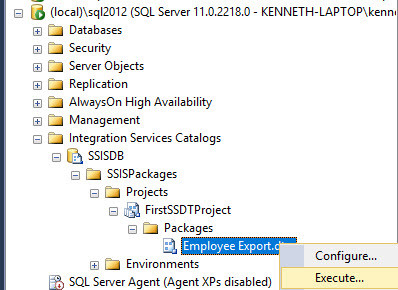 Just to be certain let’s import and run it. I know I already created the ispac file but this time I’m going to do the deployment wizard directly from SSDT. Warning: if you are using an ispac file and hand it off to someone using anything lower than SSDT 17 but higher than the version you exported the deployment wizard will upgrade the package when they deploy it which can be a rather unpleasant surprise.