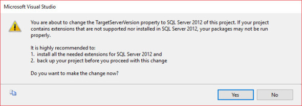 Fortunately though, one of the big changes (in my mind) of SSDT is the ability to change SSIS versions. Prior to this, you would have to have scripted the package out in BIML and re-created it in the correct version.