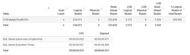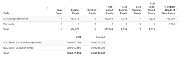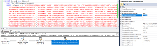 Therefore, the impact of going over 64 will be especially visible when working with strings in CCI. It will be of course less visible if your query is complex and scan takes only a small part of the duration.