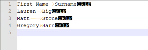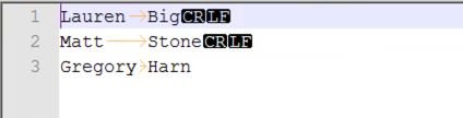 I’ll be using the tab-delimited test file below. You will notice that all the lines including the last one ends with a Carriage Return(CR) and a Line Feed (LF) Character.