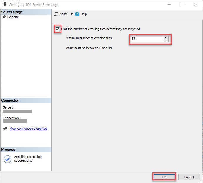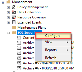 For this example, Ill be keeping one for each month and setting up a monthly job to cycle the logs. This means I will want to configure the maximum number of error logs to 12. Now something to keep in mind is that when the server is rebooted you will still only have 12 logs, you may end up loosing a log you may want to keep. I am using 12 as an example but would suggest you have a buffer and go with a number like 16 or 20 to be safe.