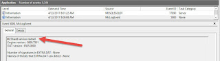 Next, we'll test the manual restart of the McShield service. And we get the same result; Event ID 5000 but no indication of memory paging. Looking at perfmon, the counters show SQL Server's Working Set and Page Faults were unchanged during the tests.